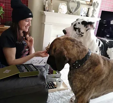 Within a few weeks, SHE WAS LIKE A DIFFERENT DOG, much more sociable in the house & didn't go off to her safe spot as much. Even Edna joins in most evenings!